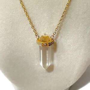 • Clear Quartz Pendant with Evil Eye 925 Sterling Silver with Gold Plating.