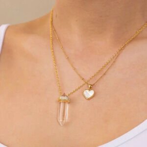 NIALAYA Clear Quartz Crystal Necklace Engraved Evil Eye Gold Plated L 18”+ 2”