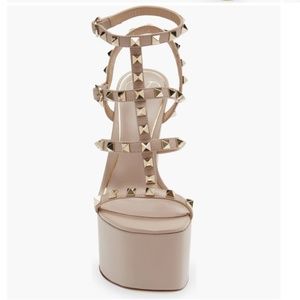 NIB $1270 Valentino Garavani Rockstud Platform Sandal in Poudre - size 40.5/10.5