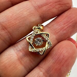 Beautiful "star of david" pendant with tons of cz round cut diamonds throughout! There is a "free floating" cz diamond in the middle (meaning, it will move to add more sparkle)