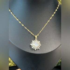 NIB- 18” Stainless Steel Golden Crystal Snowflake Necklace