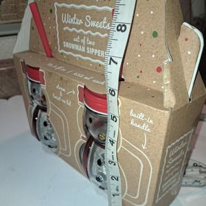 NEW IN BOX - 2 Snowman Sippers Glasses 6 inches tall with Lid and straws Glass