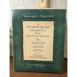 The NIB 2002 Hallmark Keepsake Ornament Santas Big Night 4 Piece Membership Set is a collectible holiday ornament set featuring a festive multicolor design. This set, part of the 2002 Christmas collection by Hallmark, includes four ornaments with a Santa theme, perfect for adding a touch of holiday cheer to any Christmas tree. Each ornament is carefully crafted to make the holiday season special for collectors and ornament enthusiasts alike.