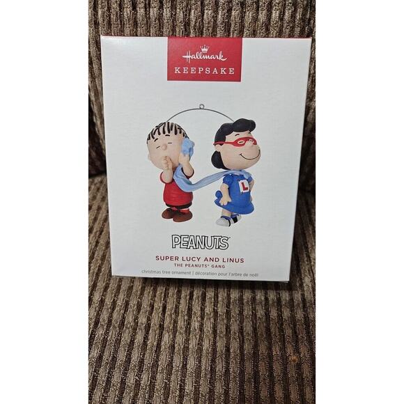 This 2024 Hallmark Keepsake Ornament features the Peanuts Gang characters Lucy and Linus in their superhero alter egos, Super Lucy and Linus. The medium-sized ornament is artist-designed and showcases the iconic cartoon characters in a vibrant multicolor design. Part of the Peanuts franchise, this decorative ornament is perfect for all occasions and is a must-have for any Peanuts fan looking to add a touch of charm to their holiday decor.