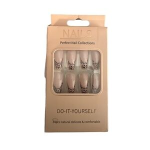 NIB 27 pcs Leopard Coffin Fake Nail Set & 1pc Nail File & 1 sheet Tape