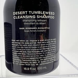 29 Palms Shampoo Desert Tumble Weed Cleansing Shampoo. This shampoo is a gentle cleansing formula engineered to remove excess oil and build up with out drying our your hair. This formulation is also gentle on your scalp. Naturally scented and enriched with eucalyptus, sage and rosemary giving it a dreamy spa-like smell.