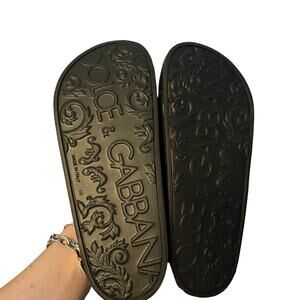 NIB $347 Dolce & Gabbana Women's Black DG Cutout Slide Sandals