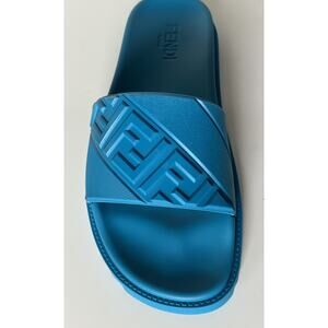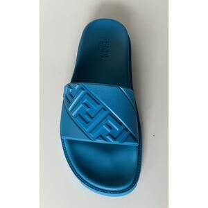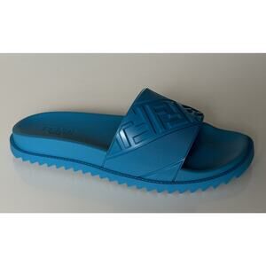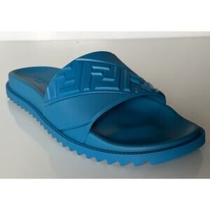 NIB $460 Fendi Men's FF Rubber Slide Sandals Cyber Blue 13 US/12 UK Italy 7X1377