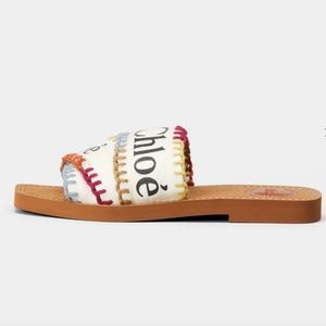NIB $495 CHLOE Woody Logo Multicolored Stitch Sandals in size 36!
