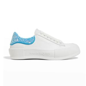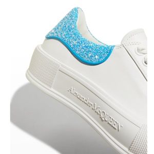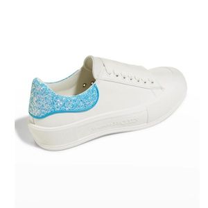 Alexander McQueen leather low-top sneakers with contrast glitter backstay.