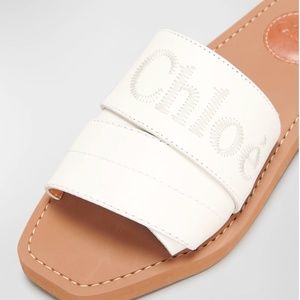 NIB $625 Chloe Woody Embroidered Logo Flat Sandals in White - size 36!