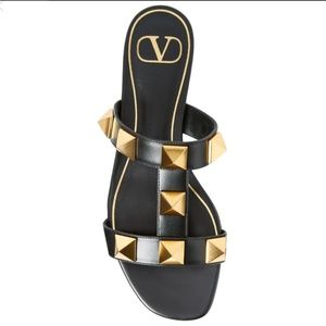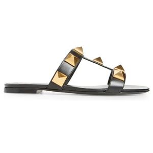 NIB $850 Valentino Garavani Roman Stud Slide Sandal in Nero, size 7US / 37 EU!