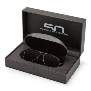50Y Limited Edition: Porsche Design aviator sunglasses with innovative spring hinge for maximum comfort. Black aviator frame made from lightweight titanium
