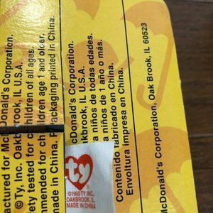 NIB 1999 Britannia the Bear McDonalds Retired Ty Teenie Original Beanie Baby Rare with Errors. This is in the original packaging. The back flap was opened slightly to be able to read the tag for errors. The Bear Tush Tag says 1993 while back of box says that the Date of Birth Dec 15, 1997. The other error is that Oakbrook, Il is written incorrectly in various places; Oak Brook IL vs Oakbrook, IL. Great for the collector. Non-smoking home