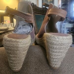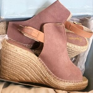 NIB ANTHROPOLOGIE (SEYCHELLES) DUSTY ROSE SUEDE, ROPE WEDGE, PEEP TOE/SLINGBACKS