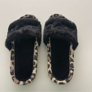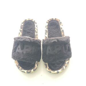 NIB APL Women's Shearling Slide Parchment NWT Black Leopard