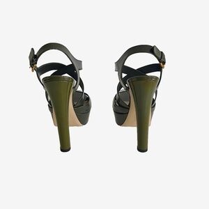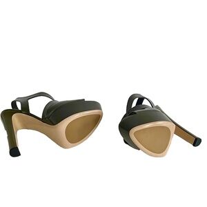 (Please note the discoloration on both heels, as shown on the pictures. The discoloration doesn't appear visible when the shoe is worn.)