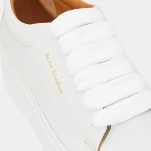 NIB Acne Studios Drihanna Platform Sneakers. Features low-top nappa leather, round cap toe, tonal lace front closure, padded collar, tonal stitching, tan leather lining, dust bag, and chunky 2" platform. Made in Italy.