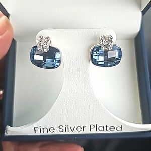 NIB Annabelle Jones Sterling Silver Plated Denim Blue Crystal Stud Earrings