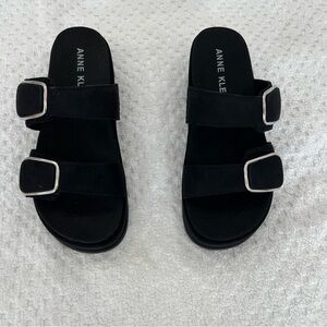 Anne Klein Women's Vero Wedge Sandal. Size 6,5 M. Black. Sole material Polyurethane Outer material Faux Suede Slip On Water resistance level Not Water Resistant Country of Origin China About this item • Synthetic upper • Synthetic lining • Perfect for both daytime and evening wear • A stylish and essential addition to your footwear collection • Iflex technology New in the box. Smoke free home (16)