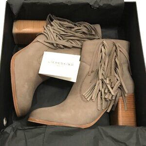 NIB Anthropologie Liebeskind Berlin Suede Fringe Nubuck Chunky Heel Ankle Boots