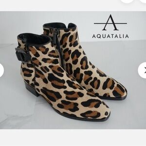 NIB Aquatalia Boots Faria Leopard Ankle Boots Size 8.5M, Zipper,Weatherproof