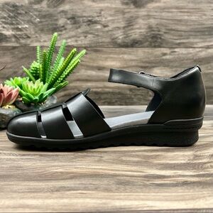 NIB Aravon Josie Two Piece Mary Jane Fishman Sandal Closed Toe Black