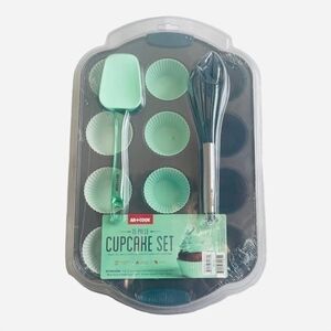 Unleash your baking potential with the NIB Art+Cook 15-Pc Cupcake Pan Silicone Liners & Tools Set in a charming mint green. This comprehensive #bakingSet includes: