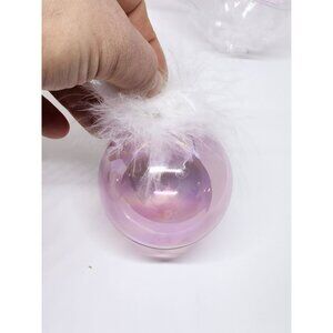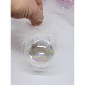 NIB At Home 5 Pc Glass Ornament Set With Faux Fur Accents Pink White