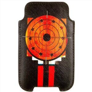Black and multicolor Givenchy phone holder with bullseye motif at front.