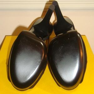 NIB Fendi Black Leather and Suede Peep-toe, T-Strap Platform Heels