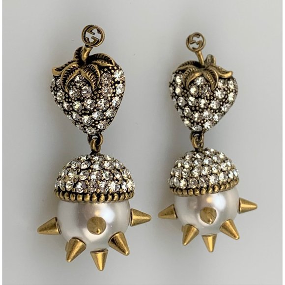 NIB Authentic Gucci Gold Studded Strawberry Pearl Earrings