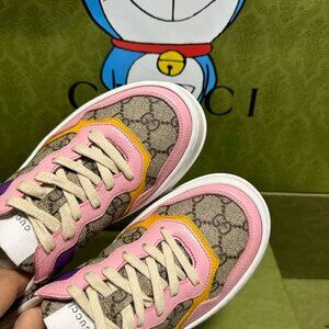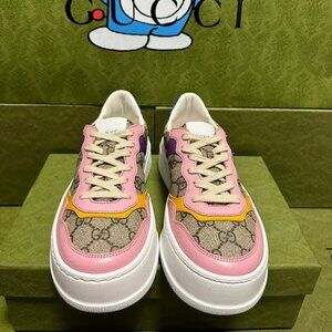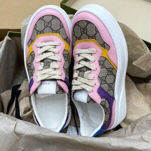 NIB Authentic Gucci Multicolor GG Supreme Canvas and Leather Low Top Sneakers