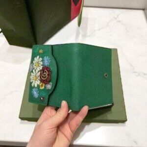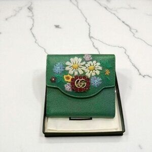 NIB Authentic Gucci Textured Calfskin Crystal Fiori Floral Embroidered GG Wallet