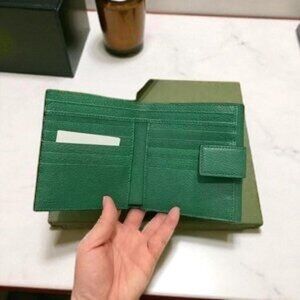 This is an authentic GUCCI Pebbled Calfskin Fiori Floral Embroidered Ricamo Wallet in Green. This stylish wallet is crafted of textured calfskin leather in green with a multicolored stitched floral design. The flap features a gold interlocked GG logo with red crystals and opens to a matching leather interior with card slots and a bill compartment.