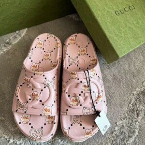 NIB Authentic Gucci x Pikarar - Kawaii Animal-Print Rubber Slides