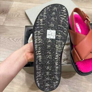 * **Design:** Criss-cross straps on the front, buckle-fastening slingback strap