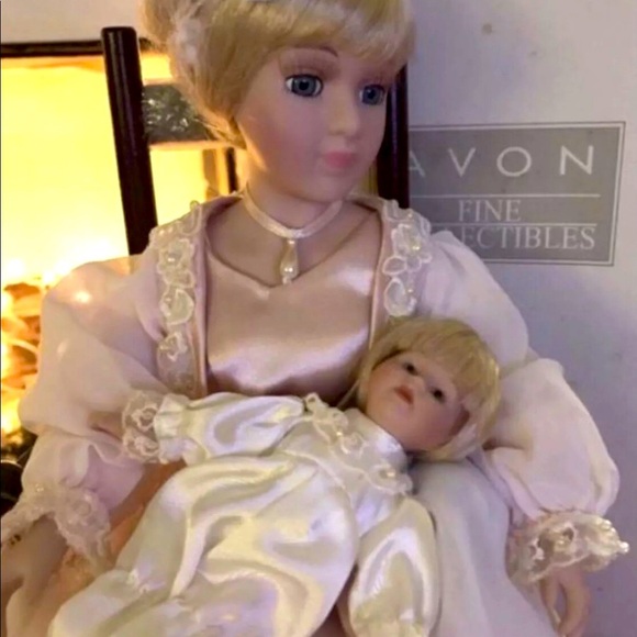 NIB Avon Ceramic Doll Mother holding baby