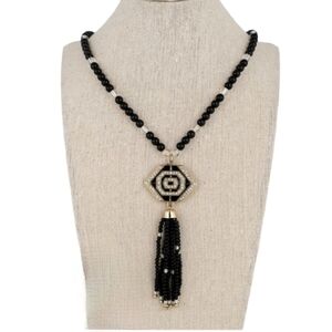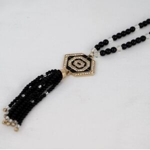 🦋 NIB Avon Forever by Paula Abdul Art Deco black and white 32" necklace