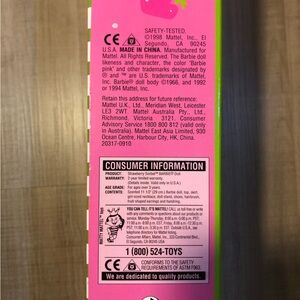 Contents: Barbie doll, top, skirt, girl-sized necklace, doll stand, shoes, hairbrush, fruit-shaped earrings and hand ring