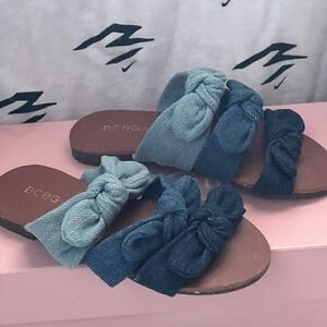 NIB BCBG Girls Caden Denim Bow Strap Slide Sandals shoes Size 12