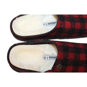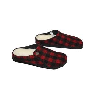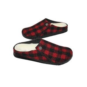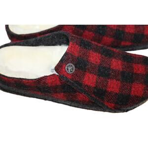 NIB BIRKENSTOCK WOMEN'S SHEARLING LINED RED BLACK PLAID SLIPPERS SZ 8