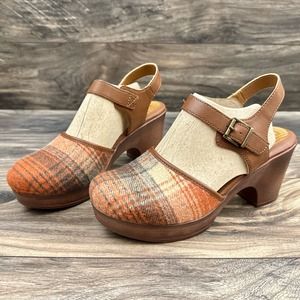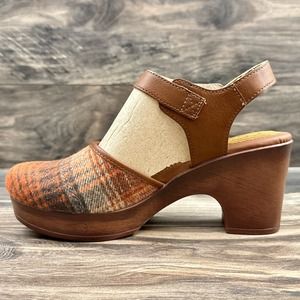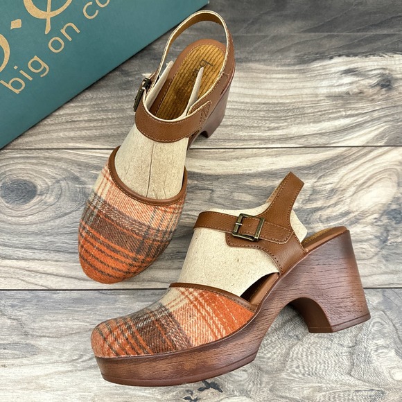 NIB BOC Born Natasha II 9M Closed Toe Ankle Strap Mary Jane Clogs Orange Plaid