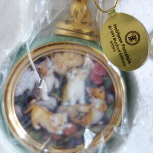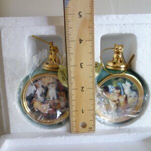 NIB BRADFORD EDITIONS / HEIRLOOM PORCELAIN 1999 Christmas Cat Ornaments