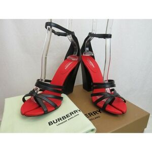 NIB BURBERRY HOVE BLACK LEATHER BUCKLE ANKLE STRAP THONG SANDALS PUMPS 38.5