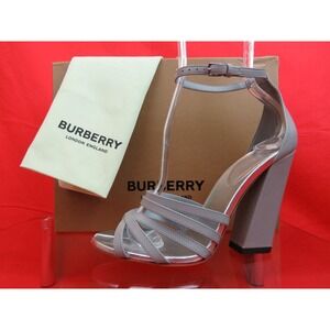 NIB BURBERRY HOVE CLOUD GRAY LEATHER BUCKLE ANKLE STRAP THONG SANDALS PUMPS 37