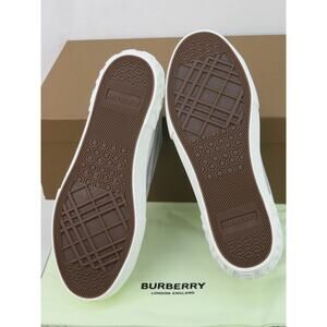 NIB BURBERRY JACK GRAY CHECK CANVAS LOGO WHITE CAP TOE SNEAKERS 42 9 ITALY