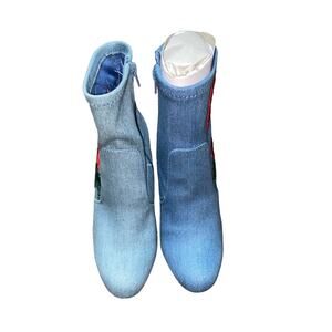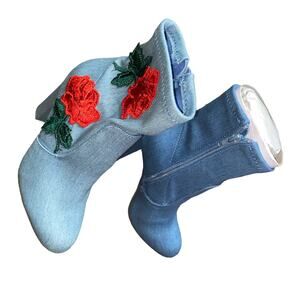 NIB Bamboo Blue Denim Rose Flower Embroidered Ankle Booties Women's Size 6