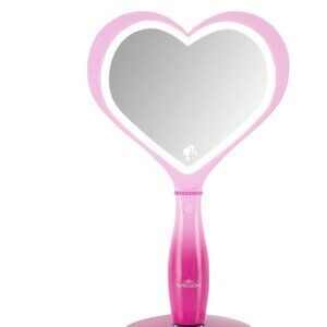 Impressions Vanity Barbie LED Handheld Makeup Mirror with Standing Base, Portable Travel Hand Held Mirror with Heart Shaped Lighting, Adjustable Brightness, Magnetic Ball Stand