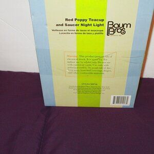 NIB Baum Brothers POPPY Red TEACUP & SAUCER Plug In NIGHTLIGHT Porcelain